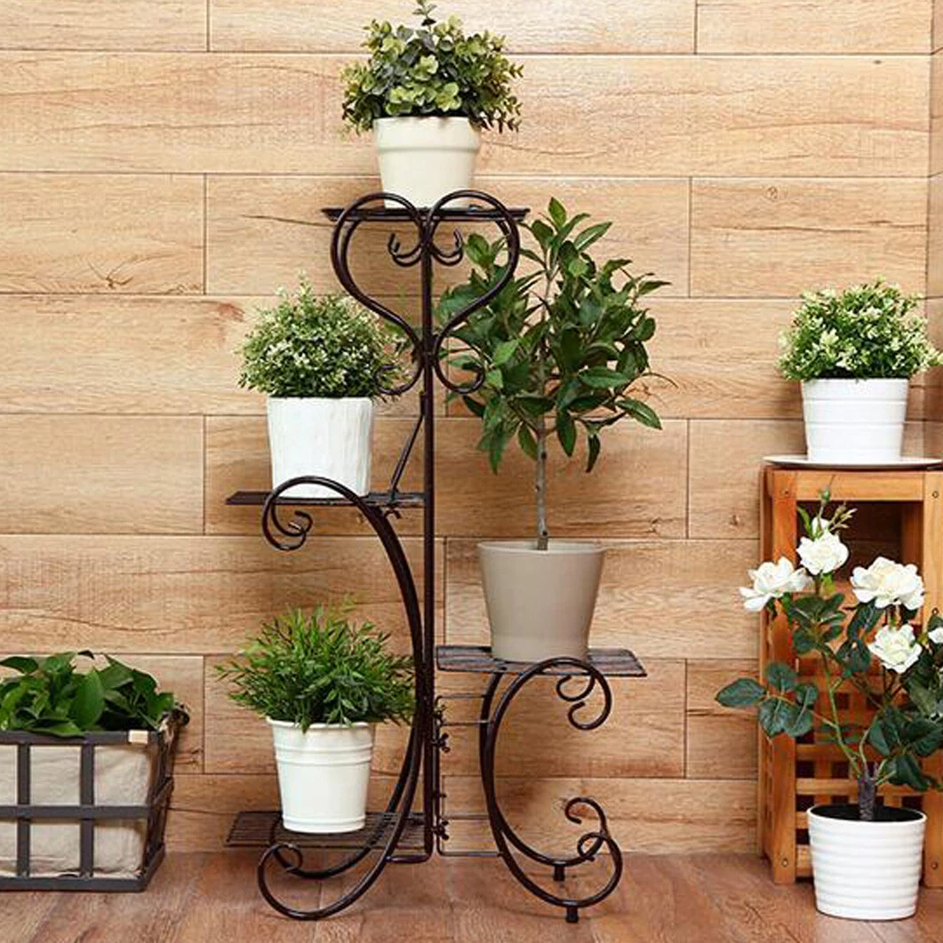 Beautiful Curve Pot Plant Stand Garden Metal 4 Tier Planter Shelves Corner Shelf Ebay
